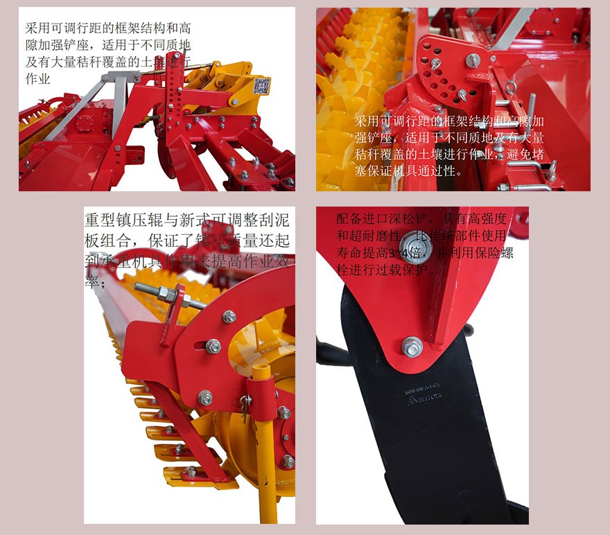 8、整機入土角度優(yōu)化設(shè)計,可調(diào)限深機構(gòu),作業(yè)穩(wěn)定、耕深穩(wěn)定性90.6%以上;