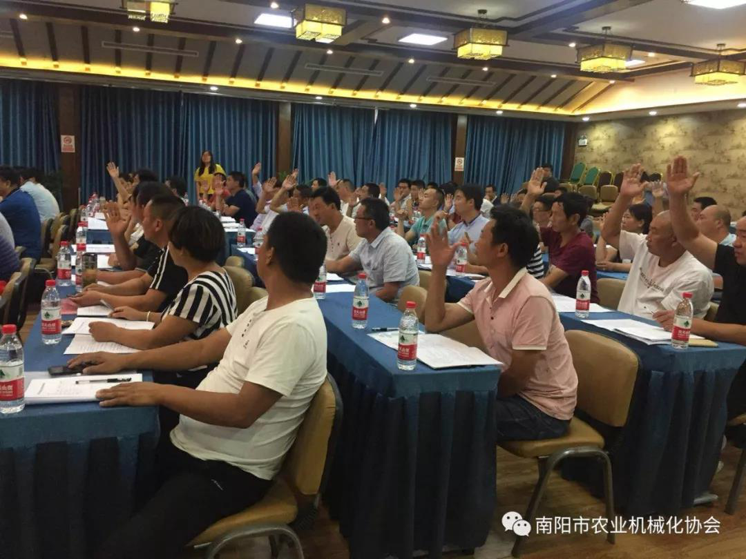 7月3日,南陽市農(nóng)業(yè)機械化協(xié)會成立大會在南陽市鷗凱印象酒店3樓會議室召開,南陽市農(nóng)業(yè)機械化管理局黨組書記、局長劉勤同志出席會議并做重要講話。選舉通過田云鎖(原南陽市農(nóng)業(yè)機械公司總經(jīng)理)同志當選為會長,亞澳南陽農(nóng)機有限責任公司總經(jīng)理史炳哲、南陽奇豐機械有限責任公司董事長趙順奇、鎮(zhèn)平縣糧豐農(nóng)機農(nóng)民專業(yè)合作社理事長薛云濤當選為副會長。