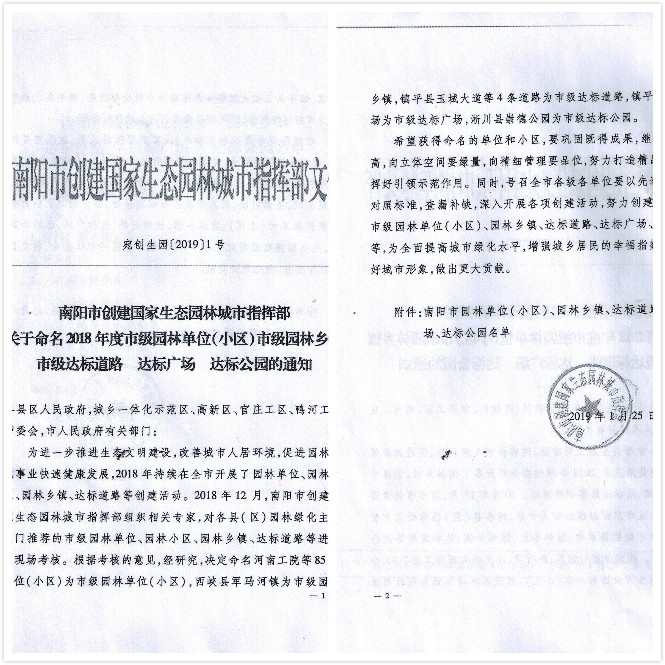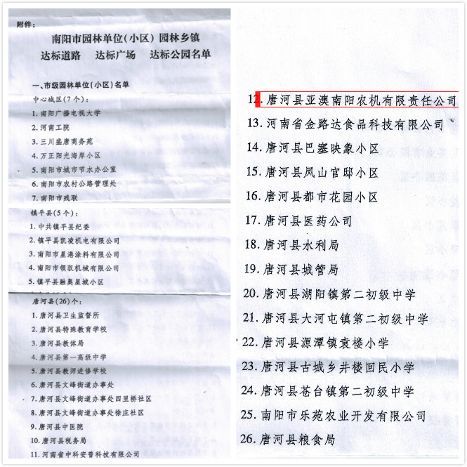 亞澳農(nóng)機(jī)喜獲南陽(yáng)市園林單位