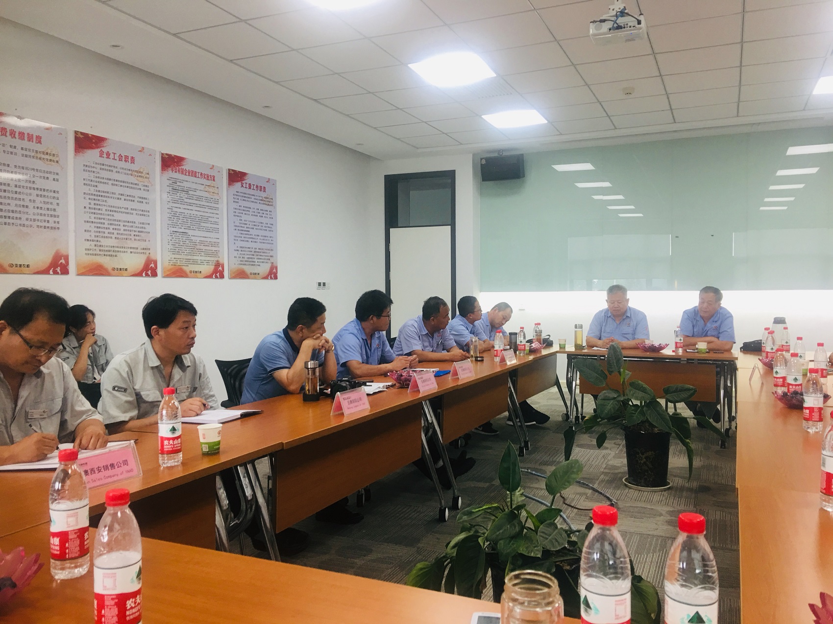 隨后,一行人來到了會(huì)議室舉行了座談會(huì),亞澳西安公司王總表示,本次來到南陽公司的目的是為了學(xué)習(xí)了解南陽工廠生產(chǎn)的產(chǎn)品,反饋目前銷售中存在的問題,同時(shí)通過對(duì)南陽工廠的理解激發(fā)一下員工對(duì)未來市場(chǎng)的銷售信心。