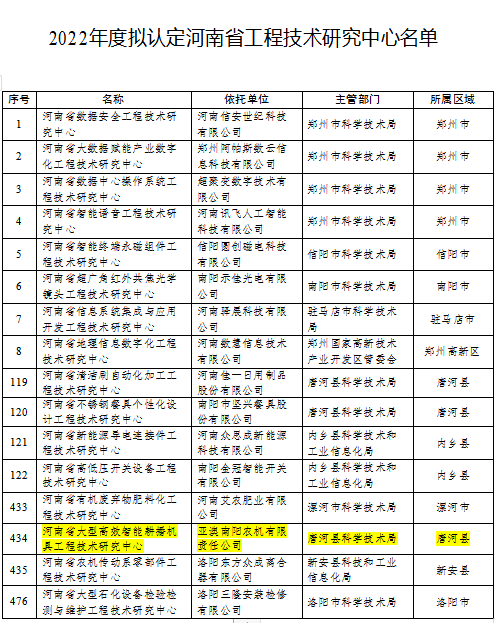 熱烈祝賀亞澳農(nóng)機(jī)被河南省科學(xué)技術(shù)廳認(rèn)定為 省級工程技術(shù)研究中心