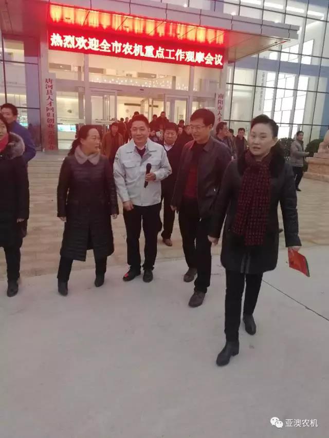 2017年12月13日,南陽市農機局劉勤局長在縣政府馬俊宏副縣長、縣農機局張凌局長陪同下帶領參加全市農機重點工作的市、各縣農機系統(tǒng)領導及各縣屬專業(yè)農機合作社人員,來到亞澳農機觀摩指導。