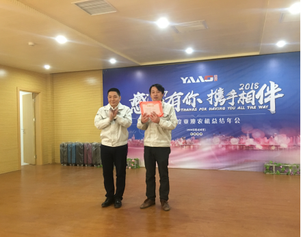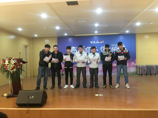 年會(huì)初始,總經(jīng)理史炳哲致新年賀詞,并做了2017年年度總結(jié),宣讀了2018年度規(guī)劃。對(duì)亞澳全體員工在過(guò)去一年中做出的努力和奉獻(xiàn)給予了充分的肯定和贊揚(yáng)。接著由生產(chǎn)主管王紅衛(wèi)和質(zhì)檢作業(yè)長(zhǎng)朱謹(jǐn)超分別為我們作了2017年工作總結(jié)及涂裝質(zhì)量問(wèn)題分析。最后由總經(jīng)辦郭靖特助宣讀了2017年度表彰決定,對(duì)優(yōu)秀員工,優(yōu)秀班組、市場(chǎng)開(kāi)發(fā)先鋒、項(xiàng)目申報(bào)、新產(chǎn)品開(kāi)發(fā)等五個(gè)獎(jiǎng)項(xiàng),共15人進(jìn)行了表彰。